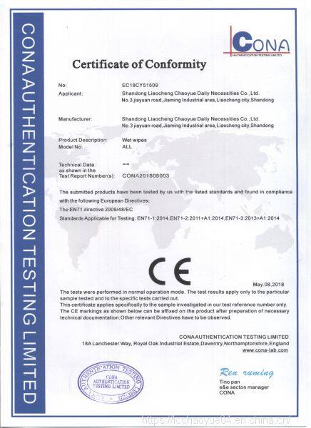 Shandong Liaocheng Chaoyue Daily Necessities Co.,Ltd is located in Shandong,China.We are a professional non-woven wet wipes suppliers dedicated to the research and development,Sales and OEM service of spunlace wipes products including baby wipes,make up remover wet wipes,female care wipes,anti-bacterial wet wipes,shoes wipes,industrial wet wipes,restaurant towels,bamboo wipes,multipurpose wet wipes ,baby diaper and adult diapersOur producets are distributed to all over the world,We provide perfect quality to build a good brand imageRelying on strong technical force and advanced production equipment.We provide a wide range of high quality finished products,as well as semi-manufactued goods processing businesses